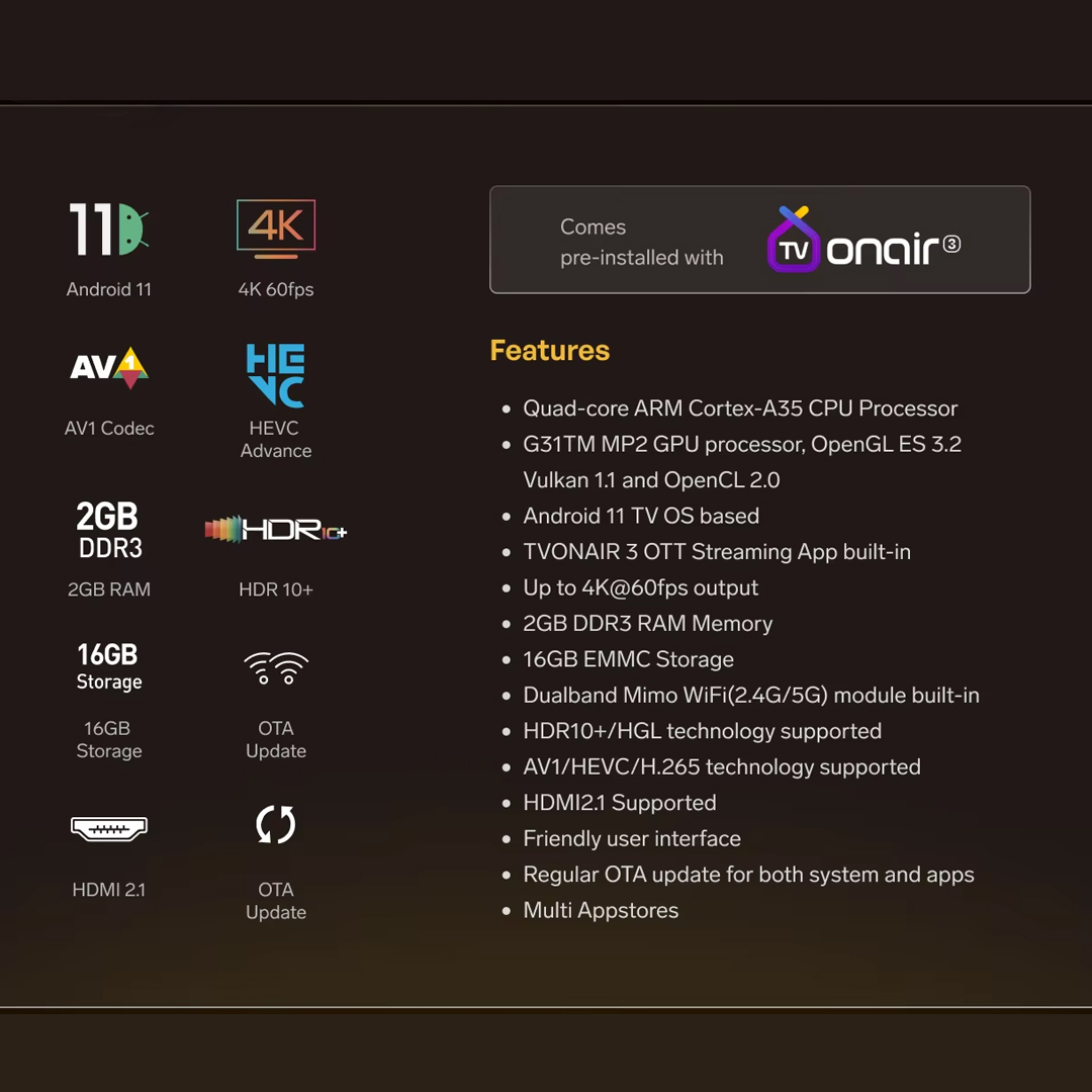 • Android 11 OS TV version
